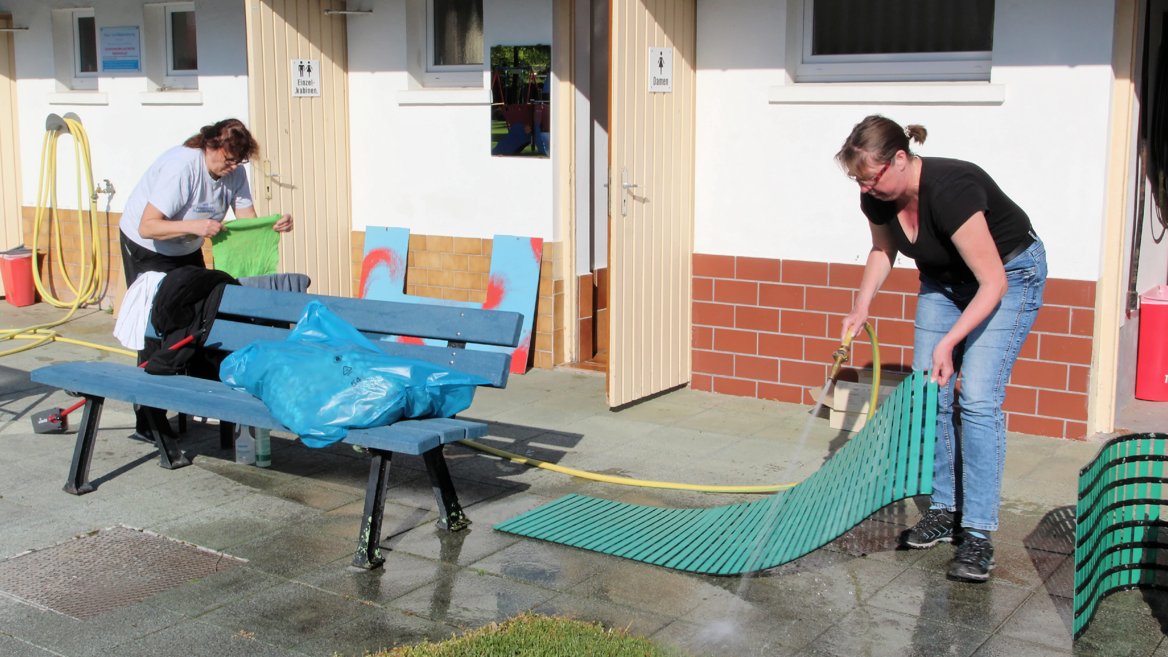 Rund 25 fleißige Helferinnen und Helfer haben am Samstag mehrere Stunden im Bad gearbeitet. Dabei wurden bereits alle Beckenroste zugeschnitten und zum Teil schon verlegt. Daneben wurden die Umkleiden, die Toiletten, sowie Sanitäts- und Büroräume geputzt. Zudem wurden neu angeschaffte Regale zusammengebaut und installiert. Nach dem 2. Frühstück hatten wir die FFW Crumstadt zu einer allgemeinen Unterweisung im Brandfall, und speziell zu einer Feuerlöscher Übung im Bad. Herzlichen Dank!!